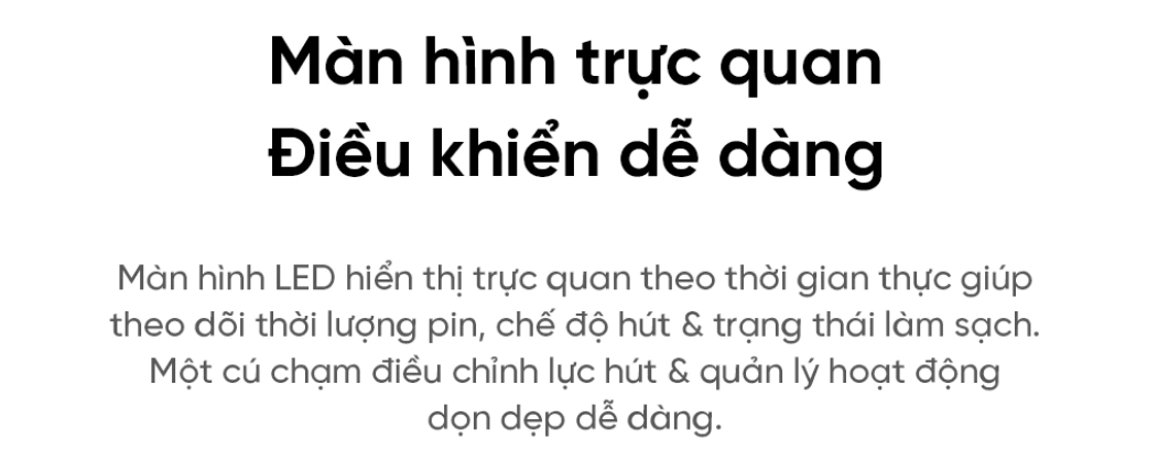 Sản phẩm được tích hợp màn hình hiển thị thông minh, cho phép người dùng dễ dàng theo dõi trạng thái pin, chế độ hoạt động và hiệu suất làm việc. Dreame V12S đi kèm nhiều đầu hút khác nhau, phù hợp với từng loại sàn như gạch, đá, gỗ hay thảm, cũng như cho phép vệ sinh các vật dụng nội thất như sofa, gối, bàn phím, rèm cửa và các thiết bị điện tử.