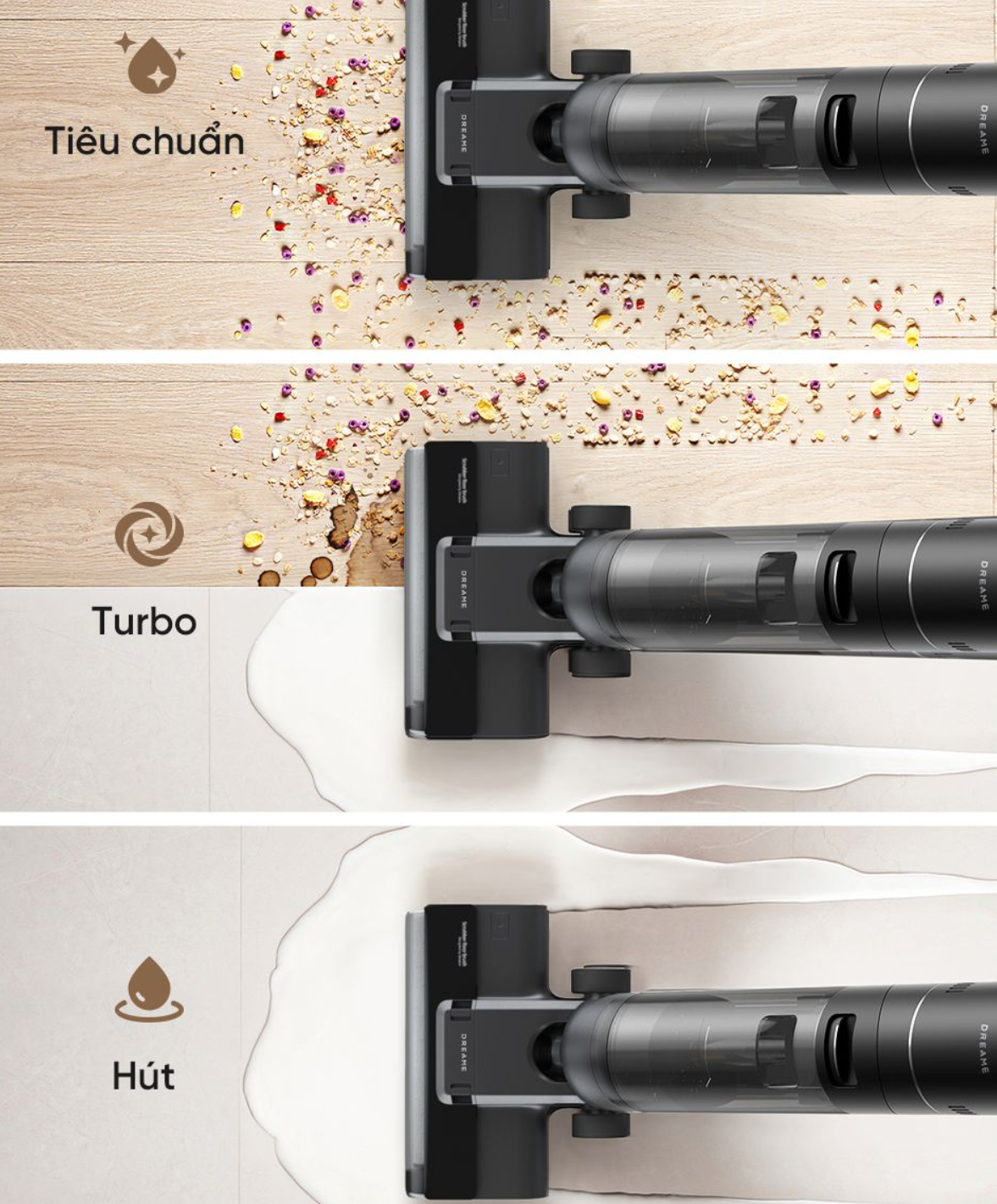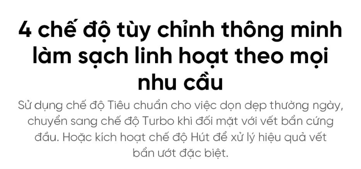 Nhờ vậy, người dùng dễ dàng lựa chọn phương thức làm sạch phù hợp với từng loại vết bẩn hoặc mức độ bẩn của sàn nhà.